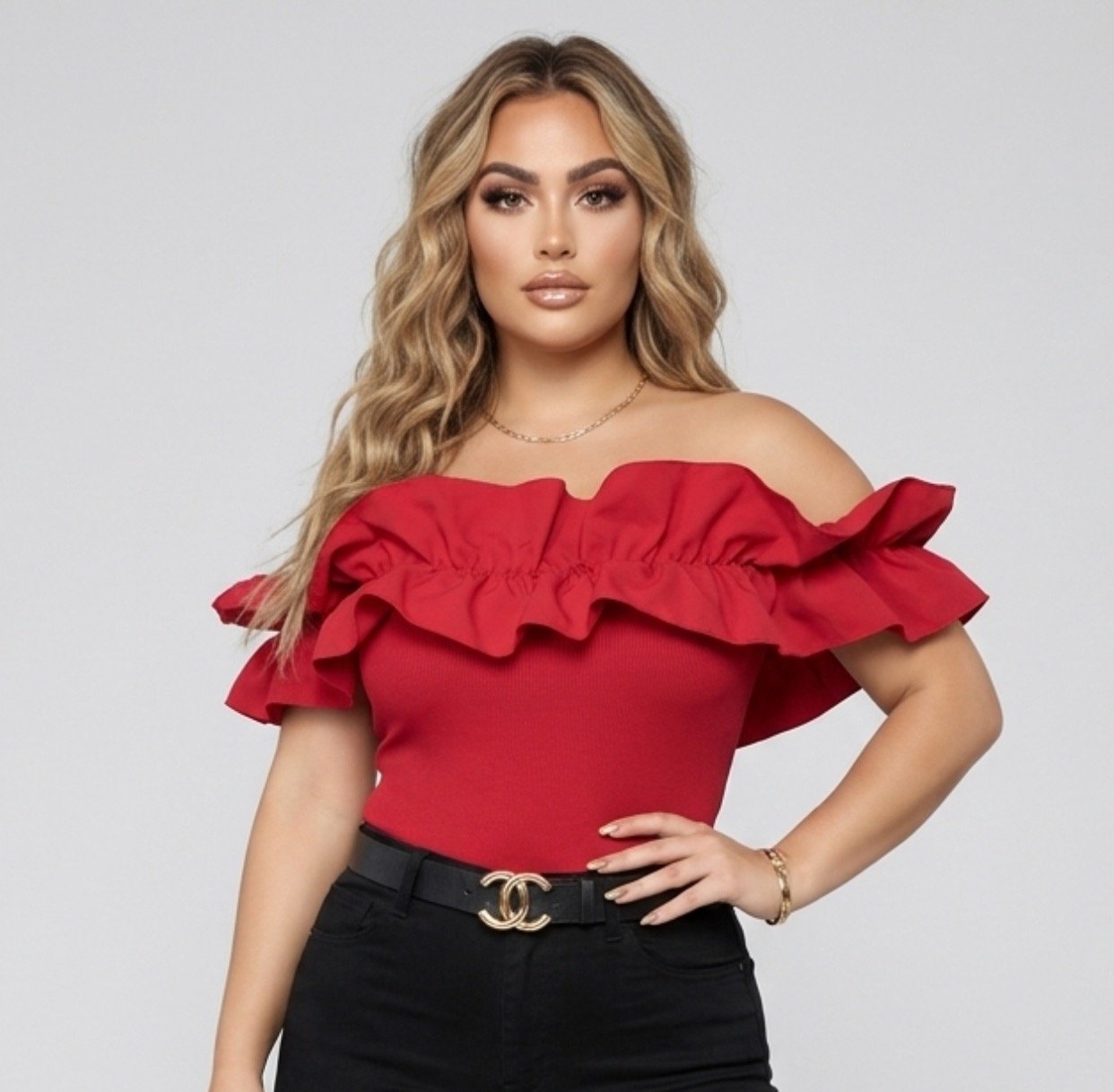 Off-Shoulder Tops: If you’re looking to draw attention to your collarbone and shoulders, off-shoulder tops are an excellent choice. They provide a flirty touch and pair well with high-waisted bottoms.